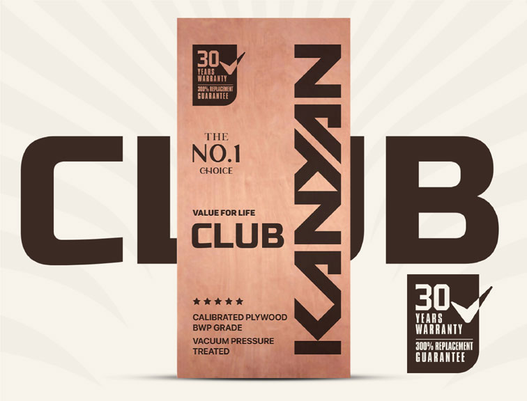KANYAN CLUB offers a perfect blend of quality and versatility, designed for those who seek reliable performance in every project. As a flagship product from Kanyan, India’s trusted plywood brand, this BWP-grade plywood is calibrated for precision and vacuum pressure treated to resist moisture and pests. With a 30-year warranty and a 300% replacement guarantee, KANYAN CLUB is ideal for furniture, interiors, and exterior applications, delivering durability and peace of mind that only Kanyan can provide.