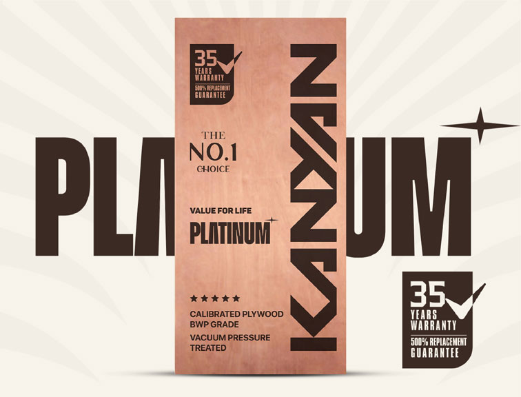 KANYAN PLATINUM represents the pinnacle of plywood excellence, crafted for those who demand unmatched quality and durability. As a leading name in India’s plywood industry, Kanyan ensures that this premium product is calibrated for precision and treated with vacuum pressure to withstand boiling water and harsh conditions. Backed by an exceptional 35-year warranty and a 500% replacement guarantee, KANYAN PLATINUM offers unparalleled reliability for high-end furniture, marine applications, and more. Trust Kanyan to deliver a product that combines innovation with enduring strength.